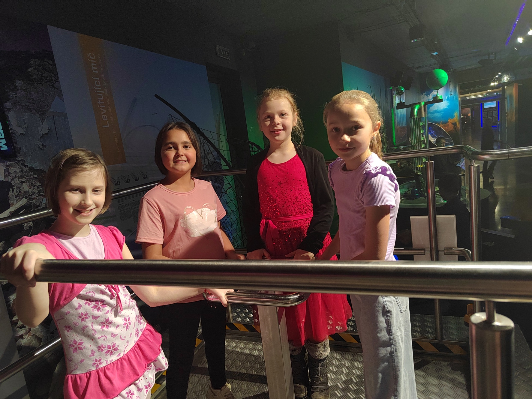 V průběhu dopoledne jsme procházeli nejrůznější expozice a při pokusech a zkoušení všech možných i nemožných simulátorů nás natáčel kameraman ČT, někteří z nás na kameru i četli, takže jsme všichni nedočkaví, kdo se nakonec v televizi objeví. Ale o to vlastně ani nejde, důležité je, že jsme si den skvěle užili a za to musíme poděkovat paní učitelce Kolafové, která nám tuto možnost nabídla.