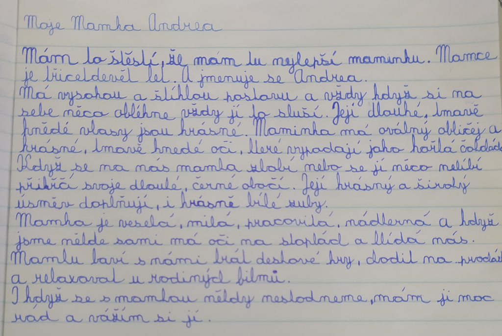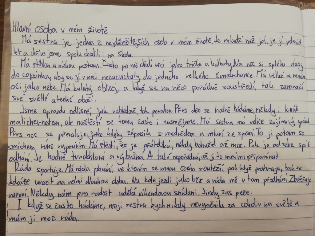 I v době distanční výuky žáci trénuji svůj písemný projev. Nejinak tomu bylo i minulý týden, kdy měli za úkol vymyslet charakteristiku osoby, kterou velmi dobře znají.