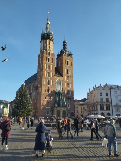 Odpoledne bylo věnováno poznávání historického Krakova. Prohlídku jsme zahájili v Židovské čtvrti Kazimierz, kde si žáci připomněli bohatou, ale i tragickou historii komunity. Následně jsme se přesunuli na pulzující Hlavní náměstí (Rynek Główny), kde si studenti po volném čase prohlédli Sukiennici a Mariánský kostel. Exkurzi jsme zakončili u Wawelského hradu, kde jsme si připomněli i místní legendu o drakovi (Smok Wawelski).