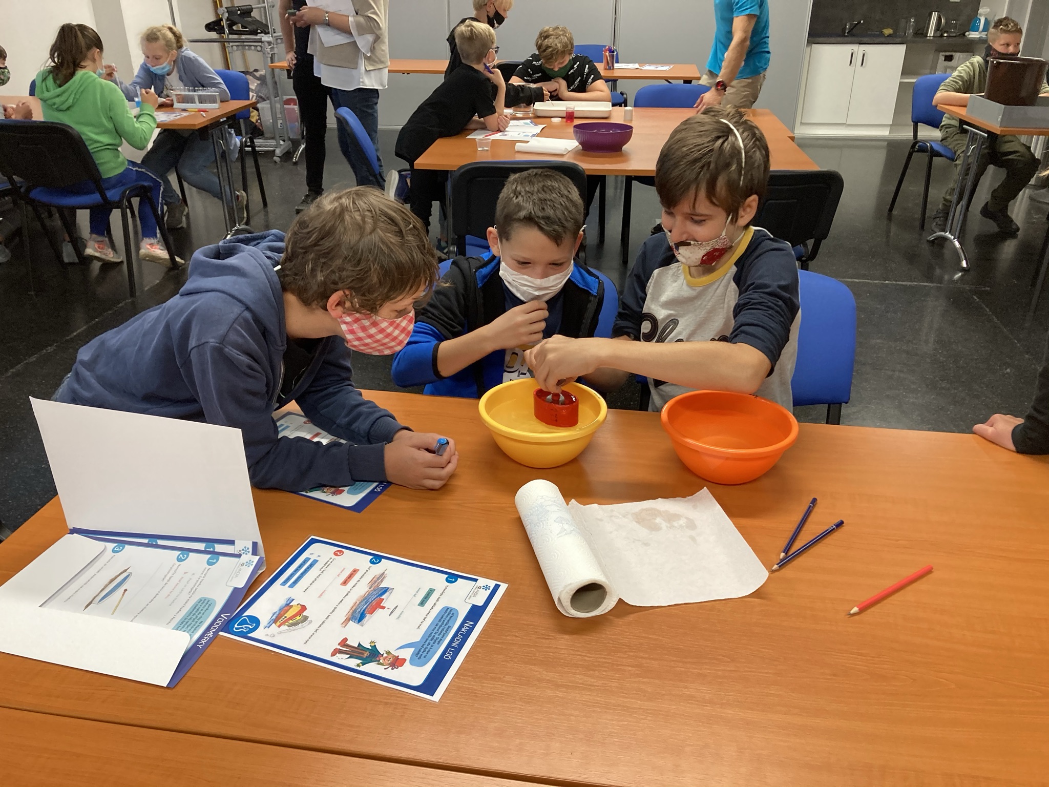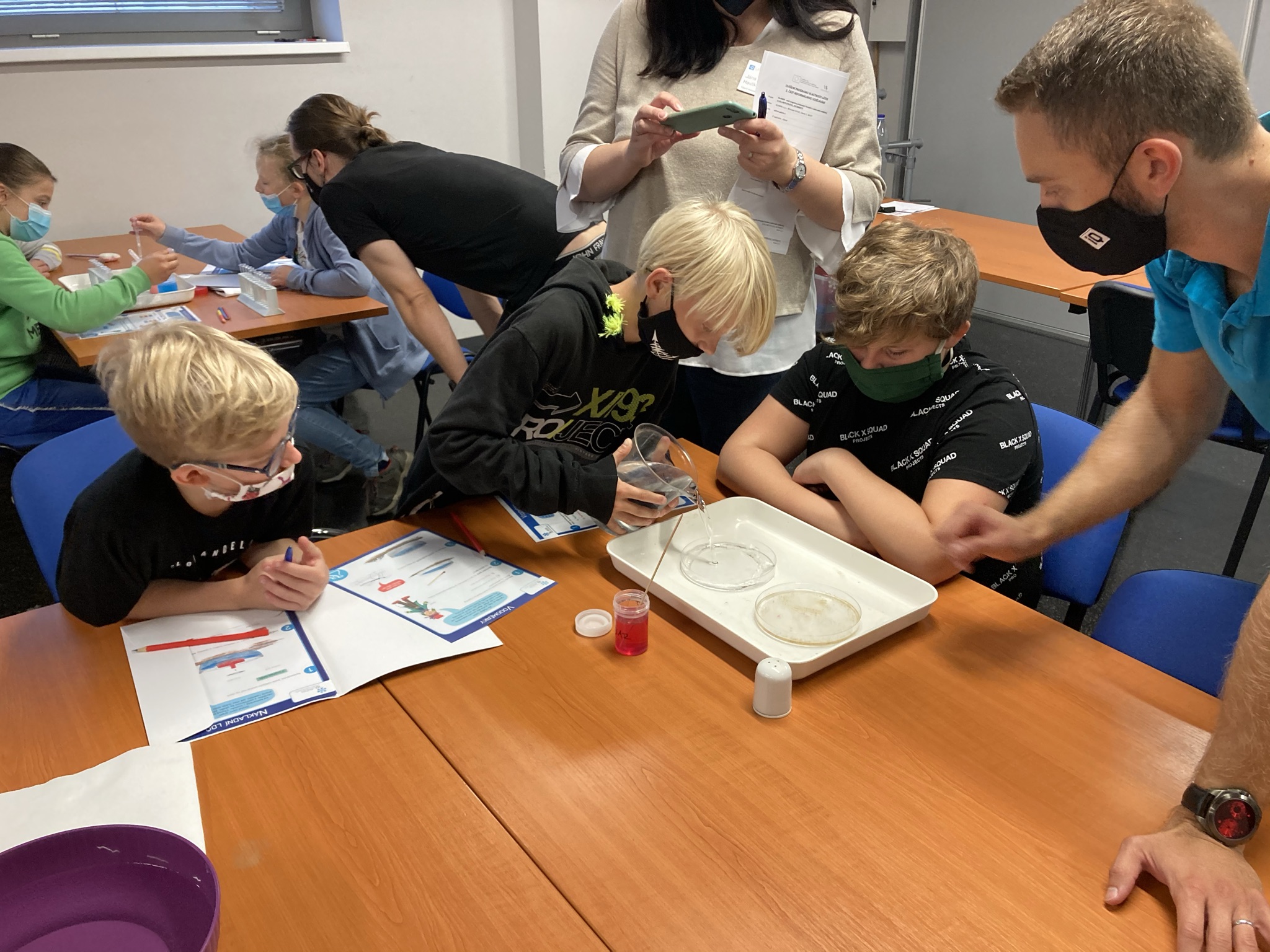 Žáci zkoumali například hustotu a tvrdost vody, tlak vody nebo povrchové napětí. Po pokusech dostali žáci každý svůj pracovní list a měli za úkol projít celou expozici iQ Landie a vyhledat zde potřebné informace. I to se jim podařilo velmi pěkně.