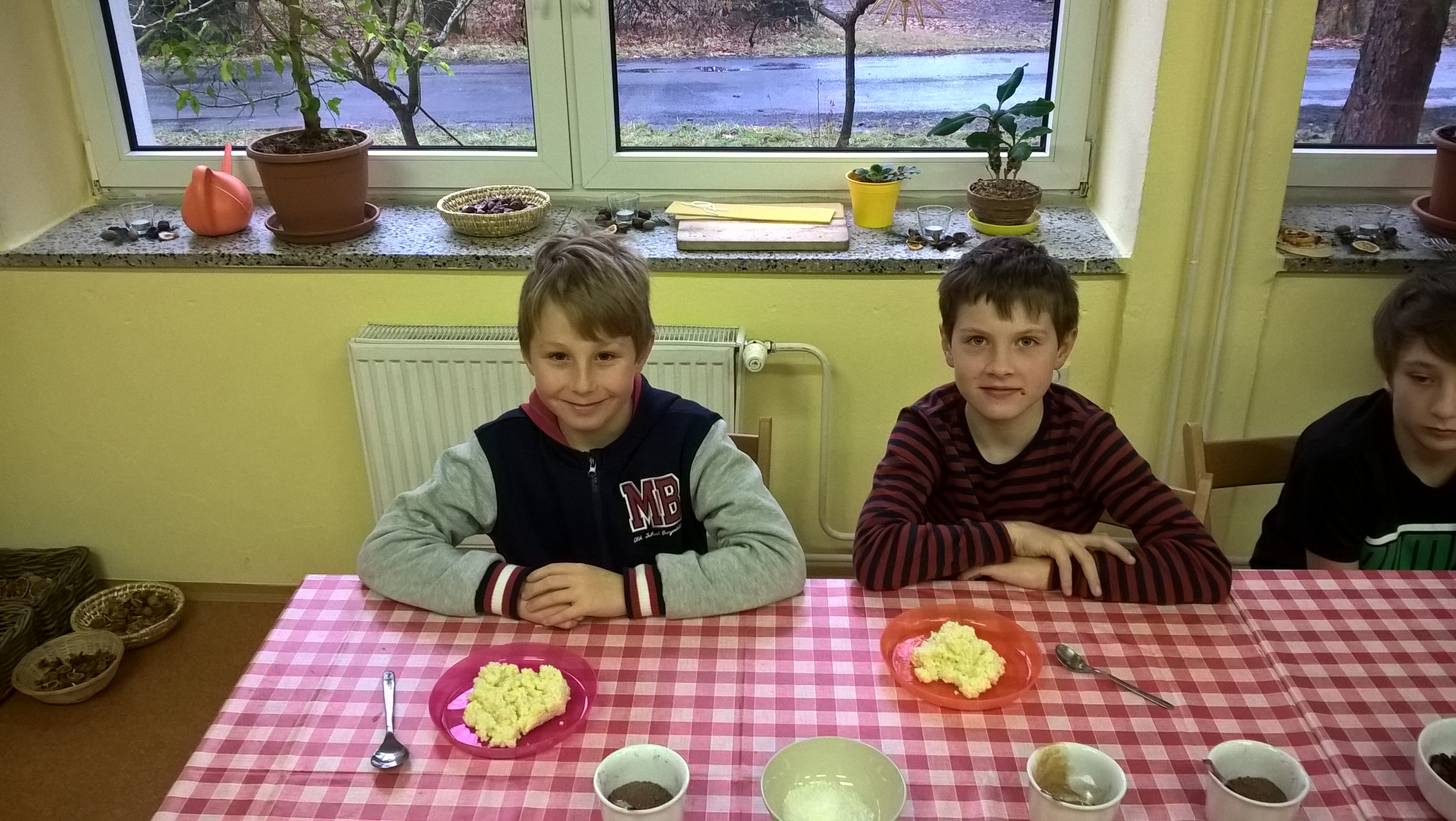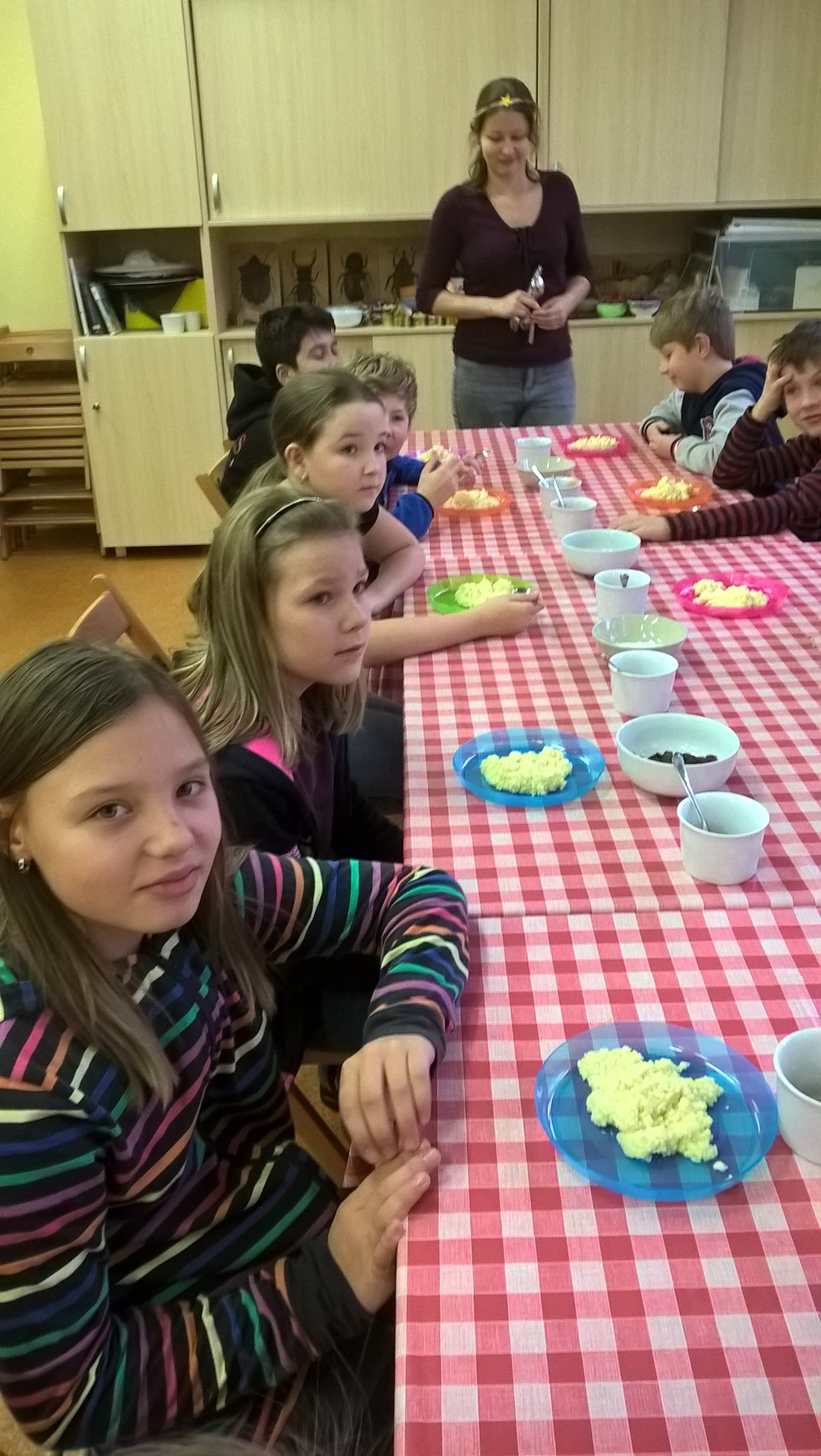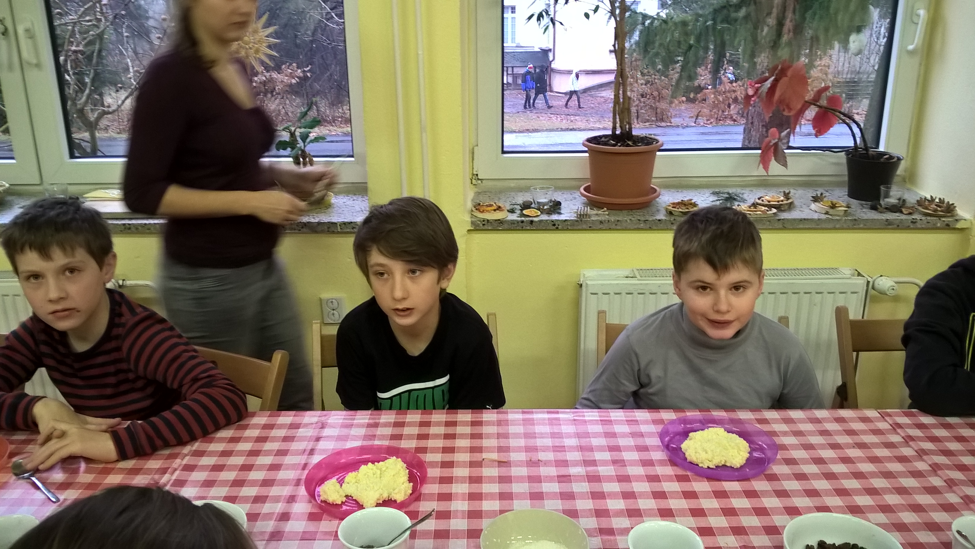 Advent si 5.B zpestřila návštěvou Ekocentra Střevlík v Hejnicích. Děti se ocitly ve vánoční třídě, vyprávěly si o symbolech adventu, zvycích a jejich historii. Žáci si zapletli rybky z pediku, což je materiál podobný proutí. Jak se nám výtvory podařily, naleznete ve fotografiích. V druhé polovině programu na děti čekalo vyrábění nepečeného cukroví, smícháním jáhlové kaše, skořice, kakaa a kokosu vznikly vynikající a zdravé kuličky. Celý vánoční program jsme zakončili stopováním po okolí Hejnic, při kterém jsme poskládali celý vánoční příběh, který jsme si slavnostně přečetli v bazilice Sv. Anny.