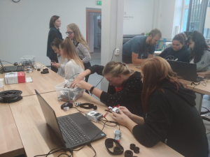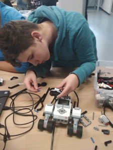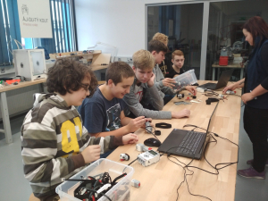 Žáci devátého ročníku navštívili vzdělávací program v IQ Landii. Jejich úkolem bylo sestavit a naprogramovat jednoduchého robota s čidly. Před sestavením probíhalo seznámení s pojmem robotika, vysvětlování fungování programu a nahrání programu do robota.