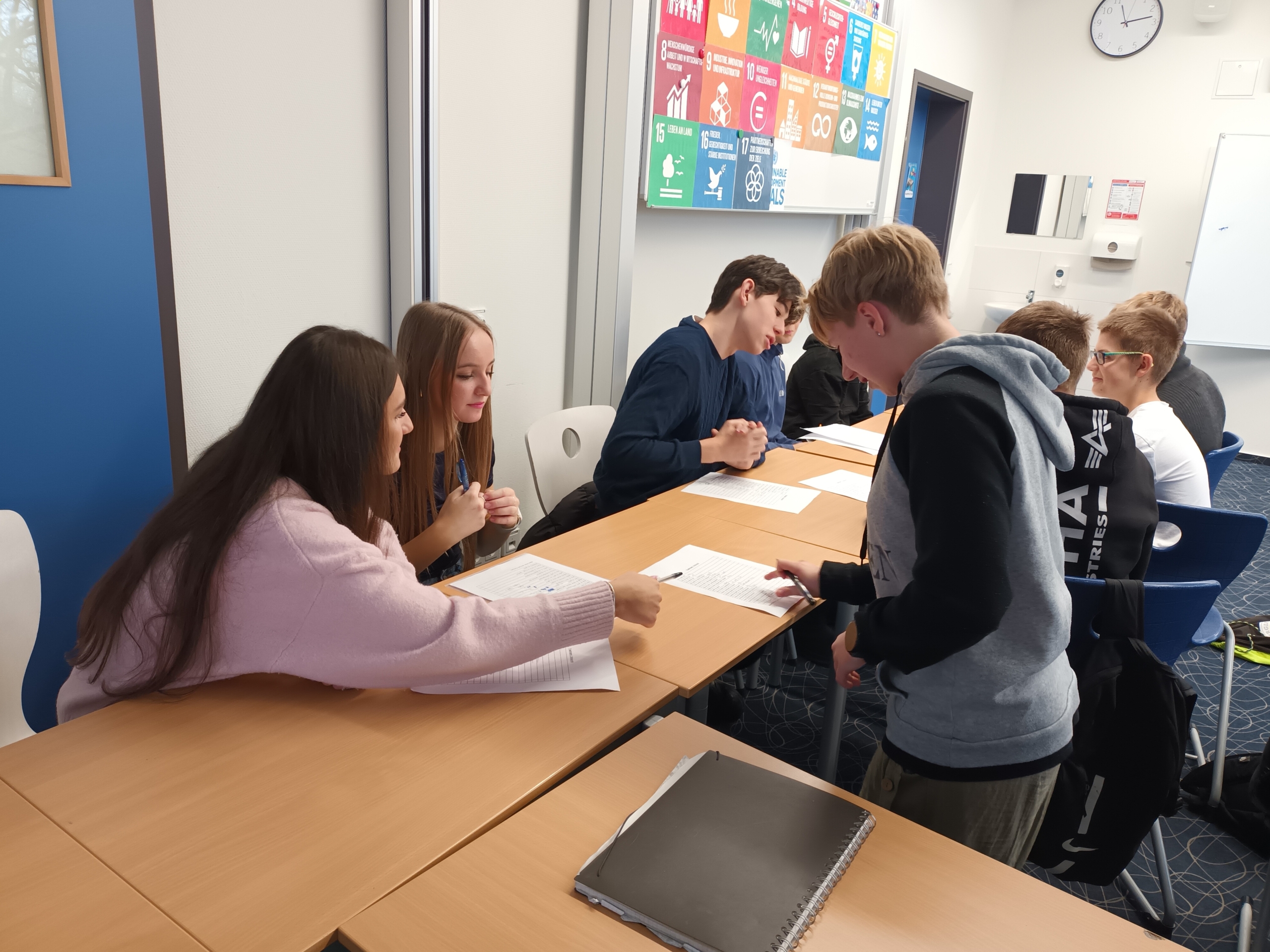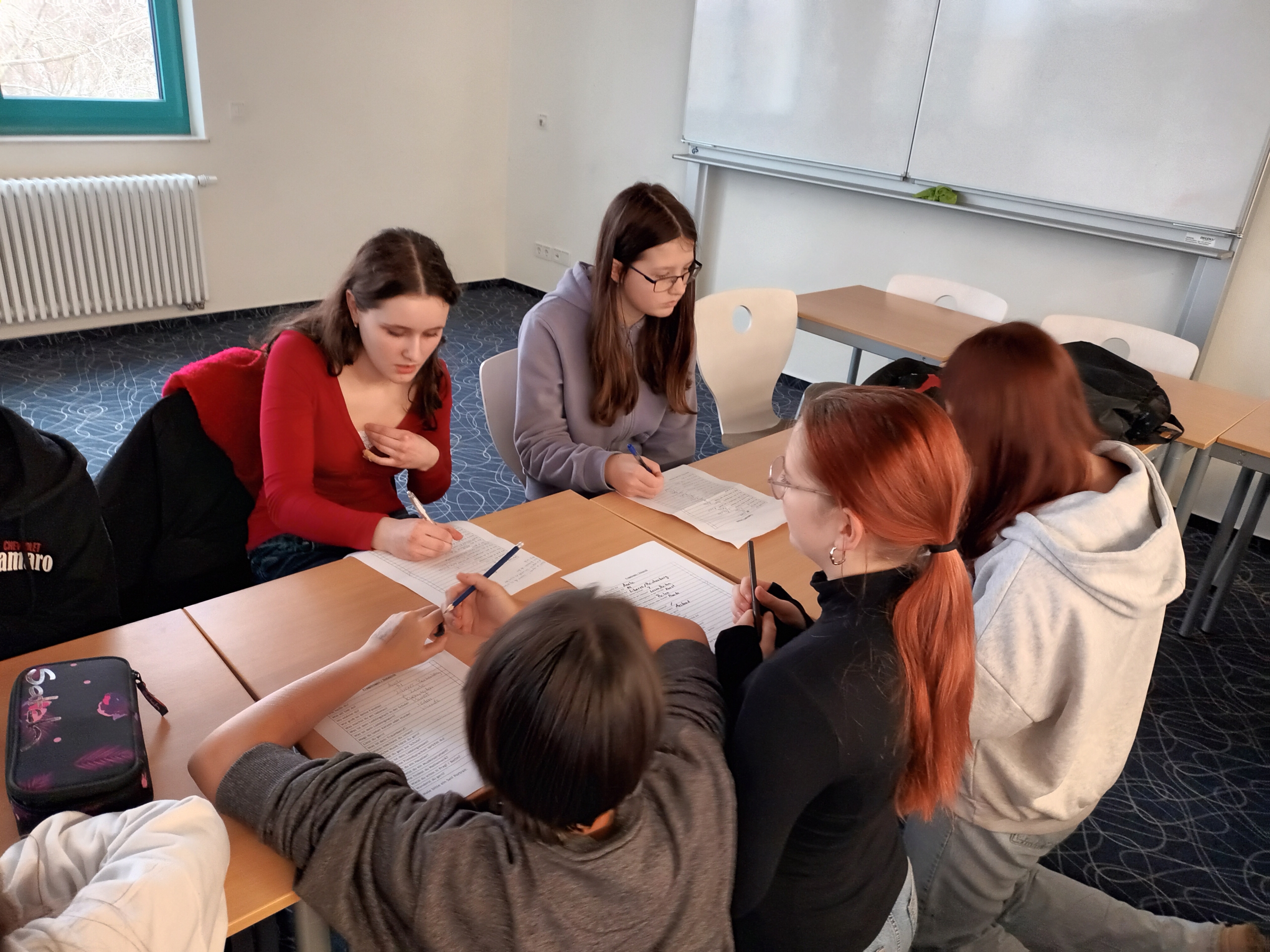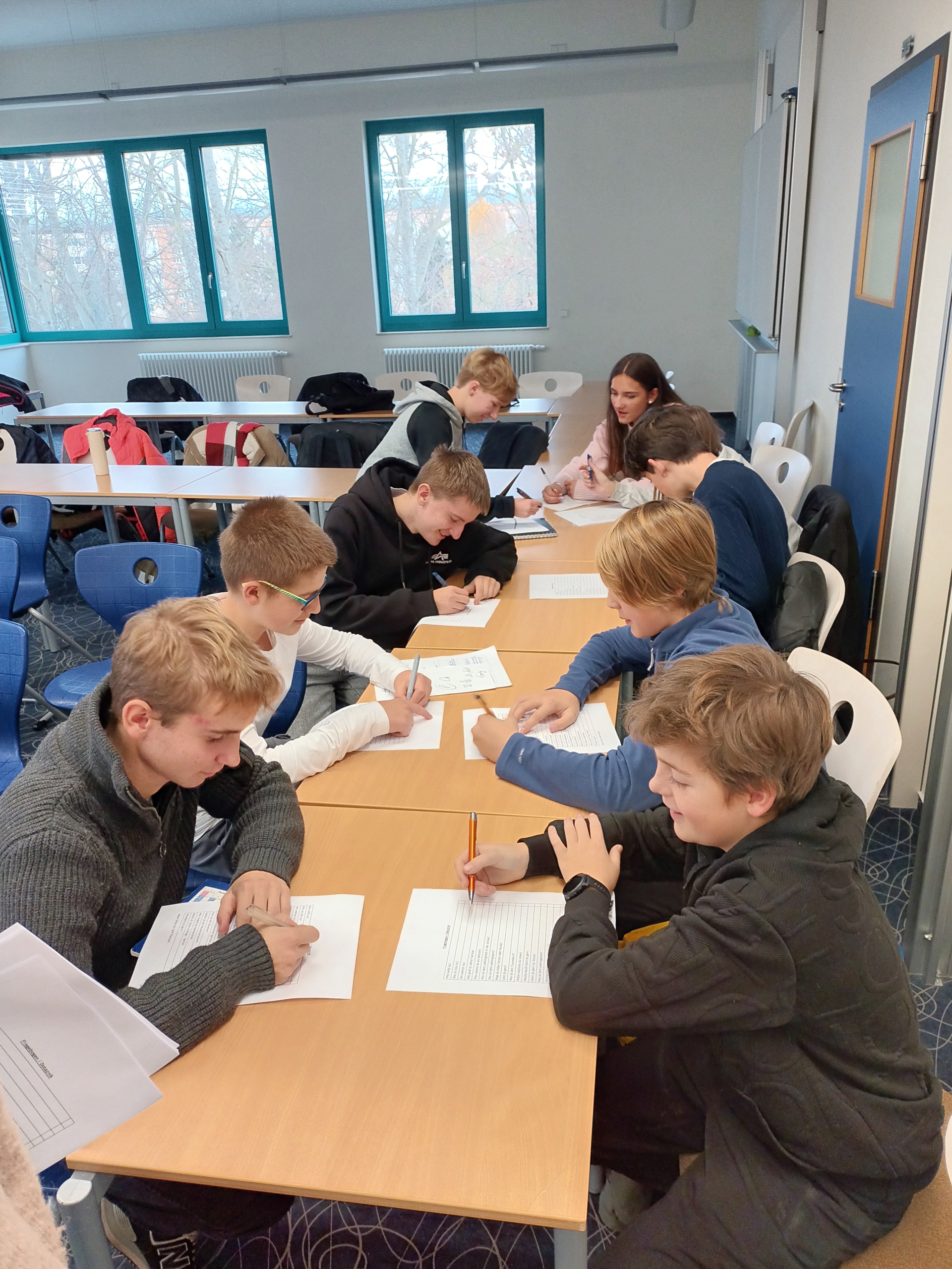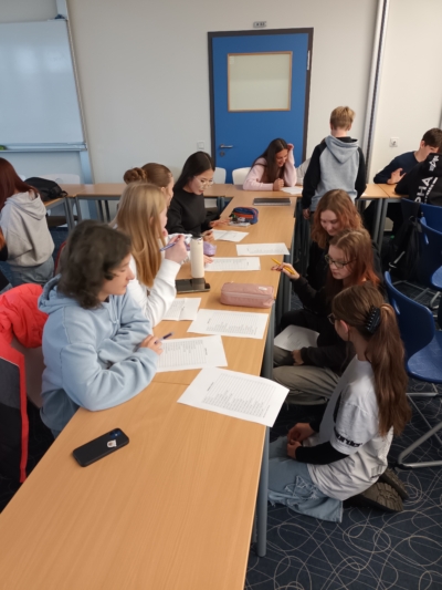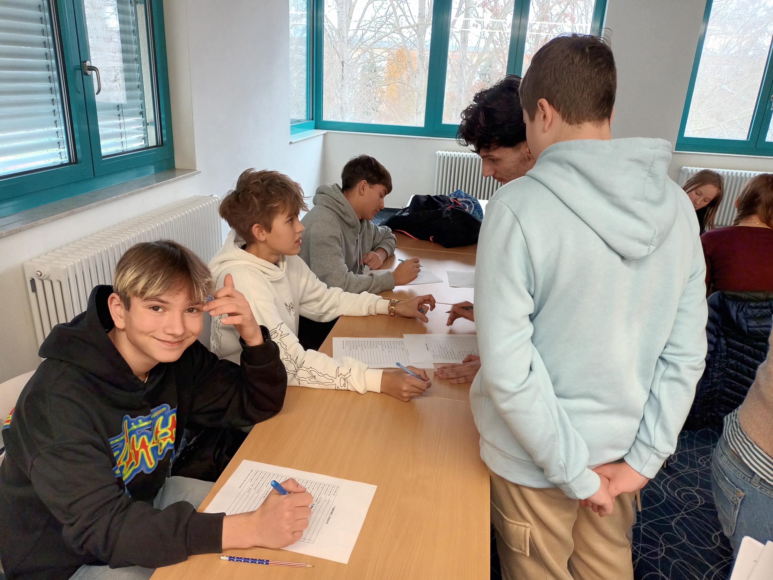 Poté nás němečtí studenti provedli po své škole. Děti vyplnily krátký poznávací dotazník a měly tak možnost porovnat rozdíly i podobnosti mezi oběma školami. Po prohlídce jsme se společně vydali do města, kde se žáci rozdělili do mezinárodních skupinek po čtyřech. Každá skupina měla svého německého průvodce – vrstevníka, který si připravil vlastní trasu i program.